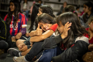 Las tardes se anuncian con la llegada de los primeros grupos de entrenamiento. Los balones comienzan a picar y los cuerpos se mueven con un objetivo definido, esquivan conos, bajan rebotes. Un equipo de entrenadores y entrenadoras dan las consignas para darle vida a las prácticas. El dominio del juego mejora cada día y de a poco definen su forma los equipos para competir con otros clubes. Los Teros en San Pedro, Los Canes en San Isidro, Las Águilas en Ita Paso y Pacú Cuá Básquet. Es una belleza verlos jugar. Esos chicos que hace pocos meses nunca habían picado una pelota, hoy están luciendo una camiseta y un par de zapatillas, abrazados con otros amigos del barrio. Ahora, con una meta en común. Eso es el PRODE también: la construcción de un objetivo. Tener algo para hacer y disfrutar haciéndolo.